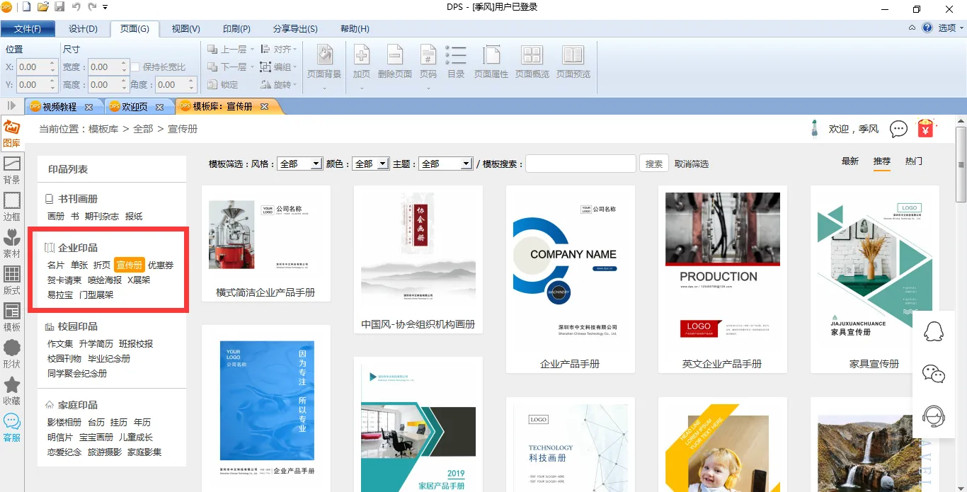 DPS软件内有非常多的企业宣传册模板,可以满足各种不同行业制作企业宣传册的需求。