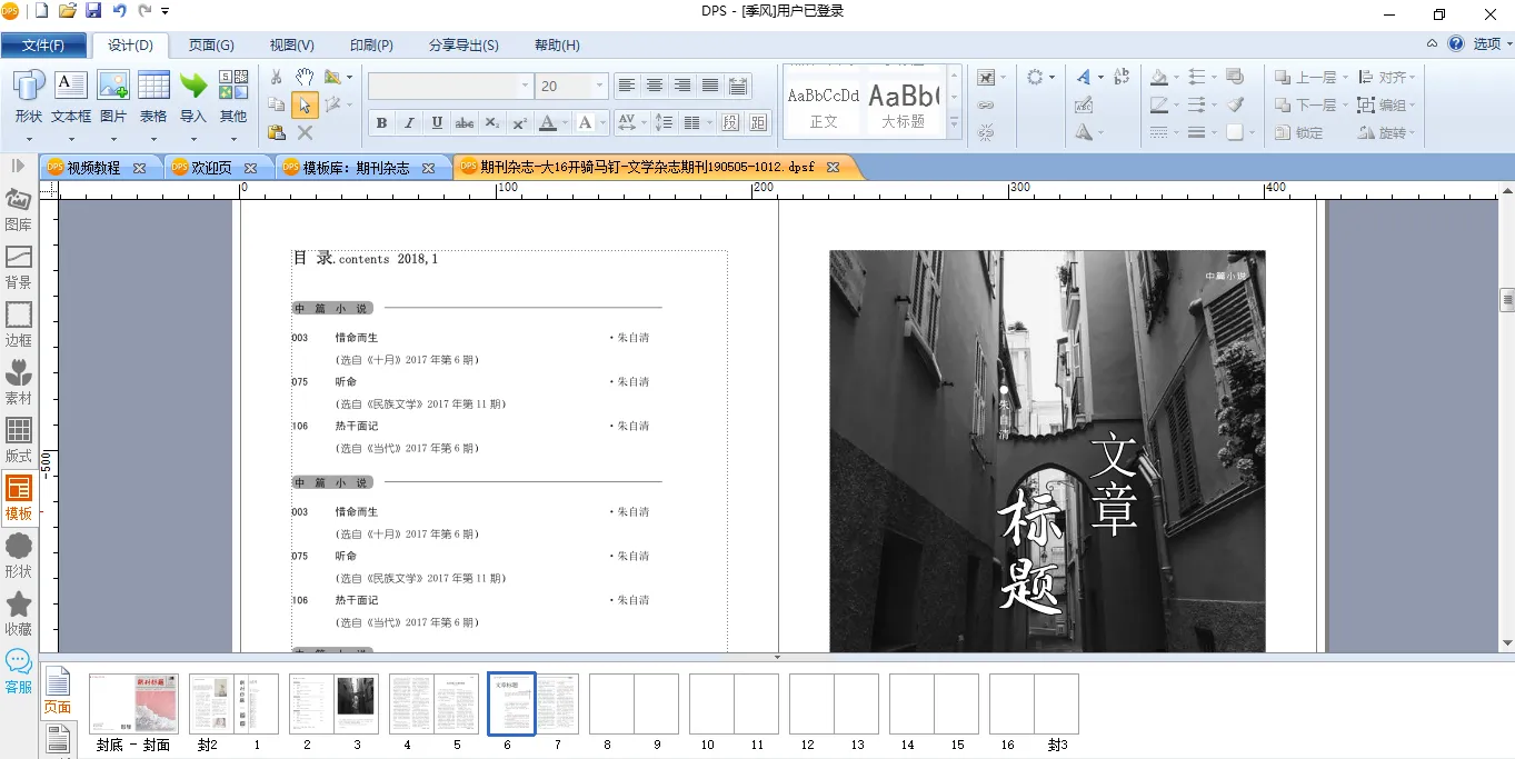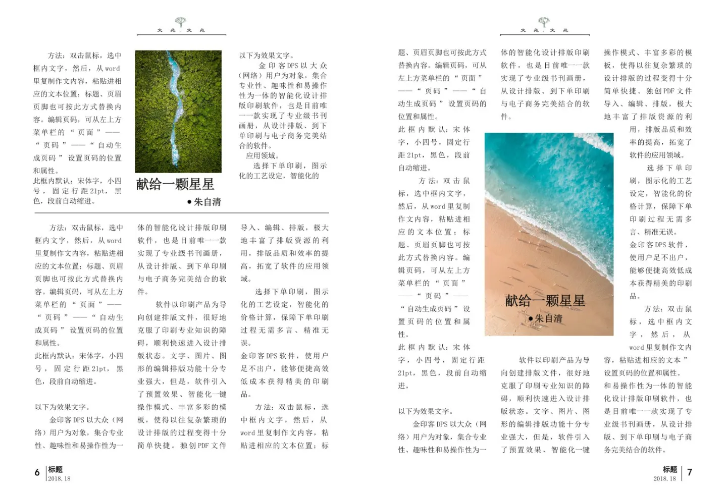 今天给大家推荐的,是金印客DPS设计排版软件最新推出的文学期刊杂志模板。众所周知,办杂志在过去是件很“高大上”的事情,通常正规杂志社,或比较有实力的组织部门才会办杂志。但是现在金印客改变了这一状况,无论是公司还是学校,甚至是班级,都可以创办属于自己的杂志,而且操作非常简单,作品十分专业。