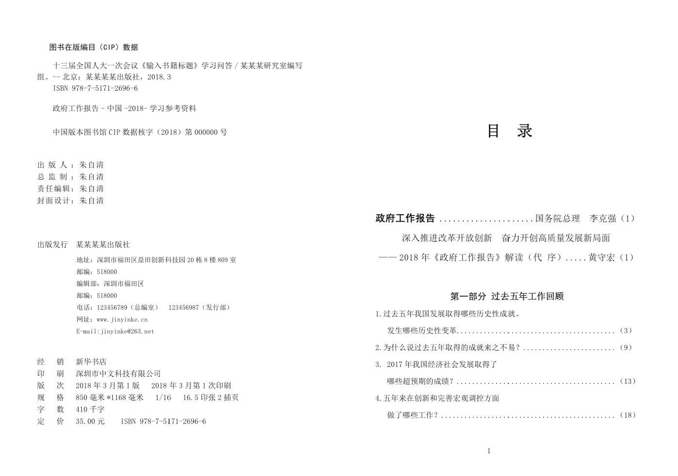 这是版权页,我们已经按照正规出版物的版权页样式为您制作好,您只需要更换模板内的文字信息即可,非常简单方便。