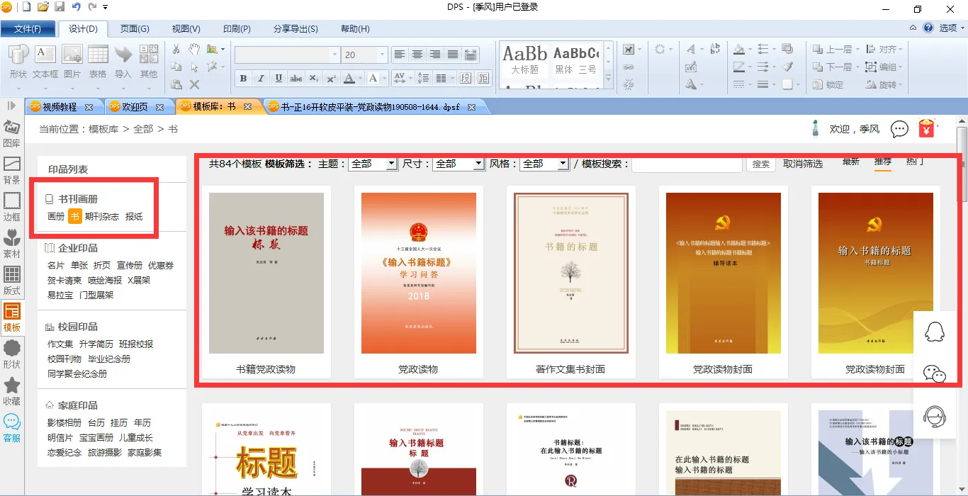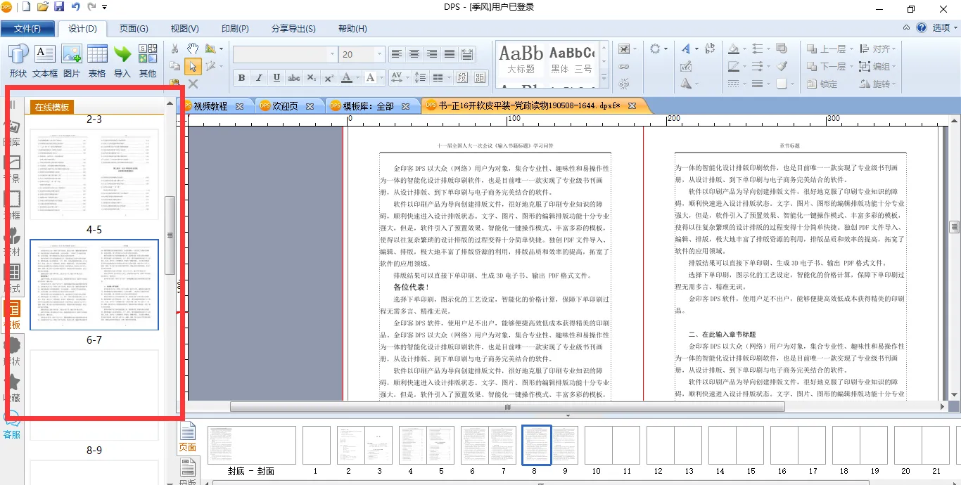 上面这些,就是我们根据当前最普遍的党政读物排版样式制作的模板。所有模板都可以免费下载,免费使用。您只需下载金印客DPS设计排版印刷分享软件,打开【模板库】,在【书刊画册】中选择【书】,就能发现许多党政刊物模板。
