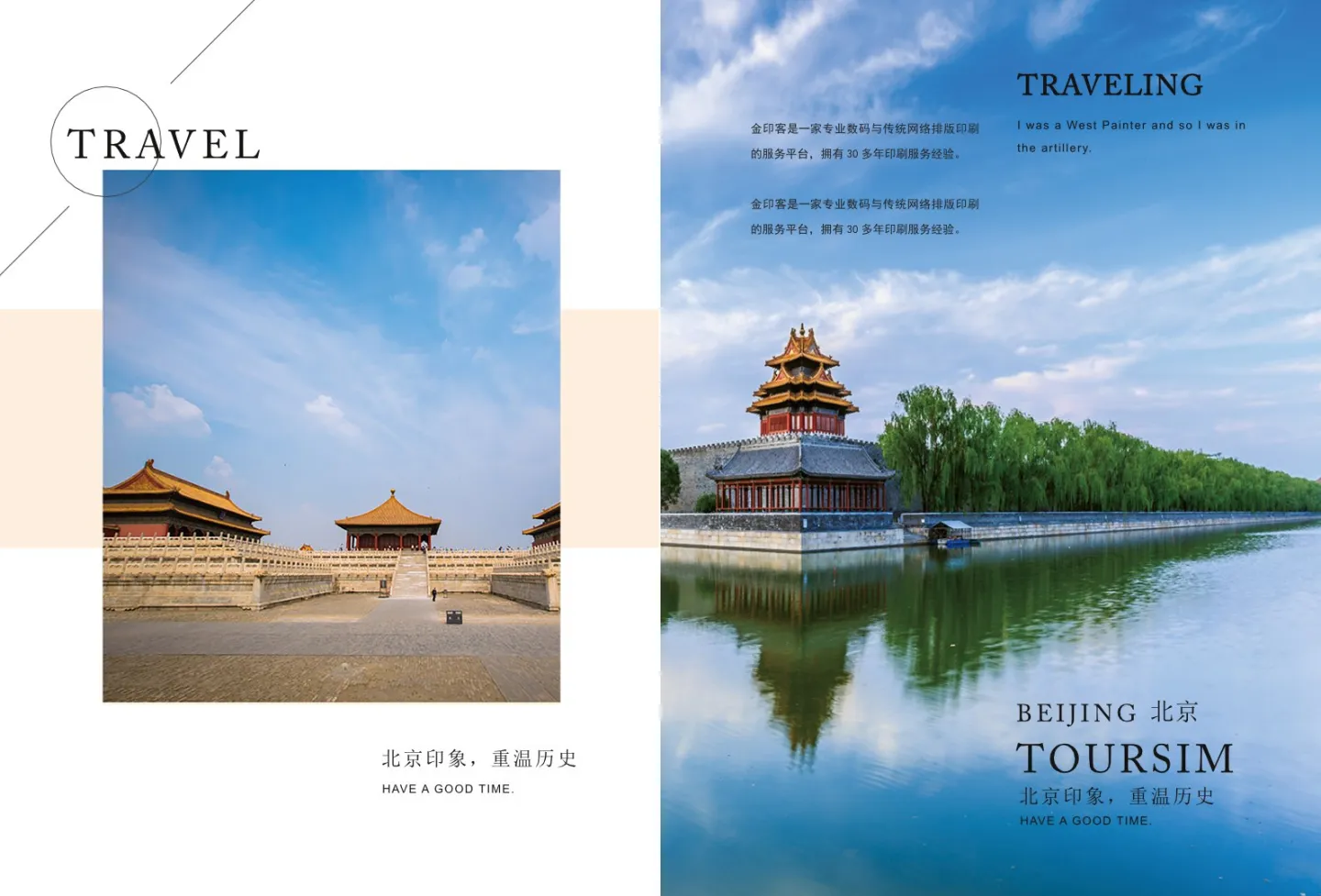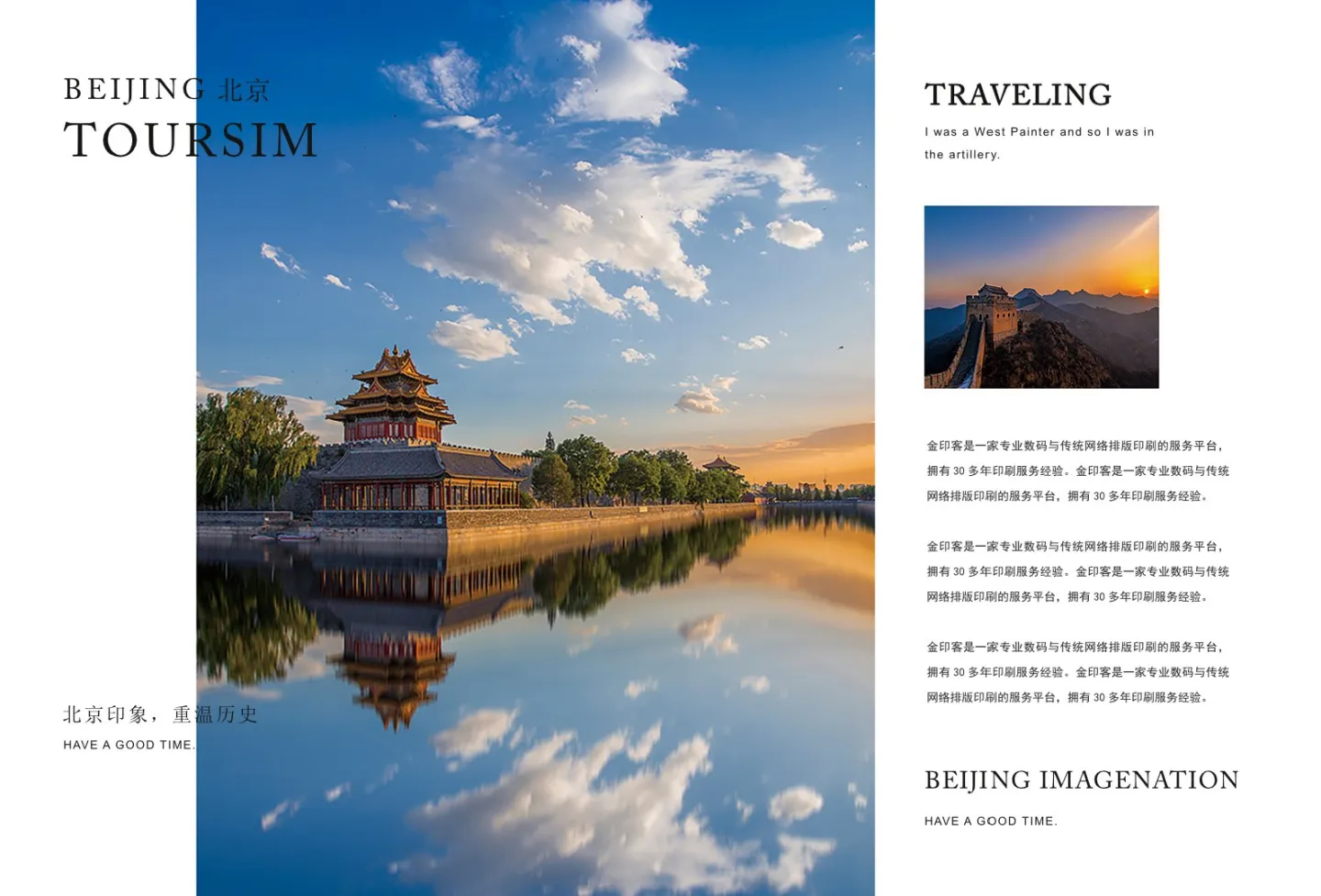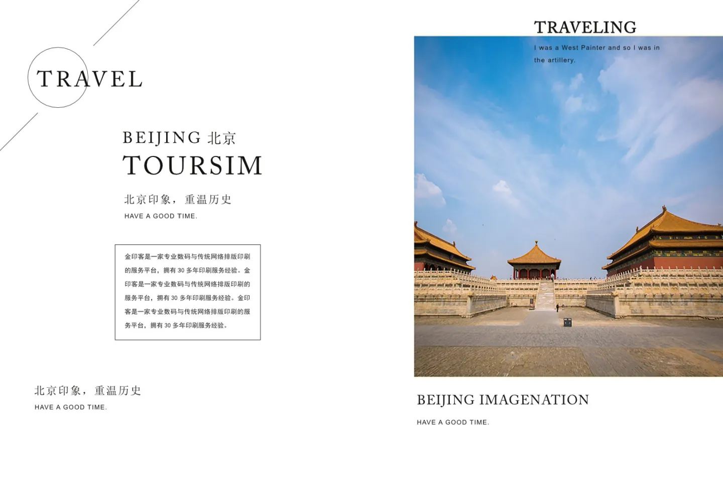有没有觉得特别的大气、壮观,又格外精美呢?这本画册的主题是《北京印象》,但不论是北京、南京还是西安、洛阳,只要是具备一定历史感照片,套上这一款模板,效果就会非常棒。那种历史与艺术相结合的气息,就会立刻扑面而来。而这种效果,不是简单的照片堆积和排列能够办到的。