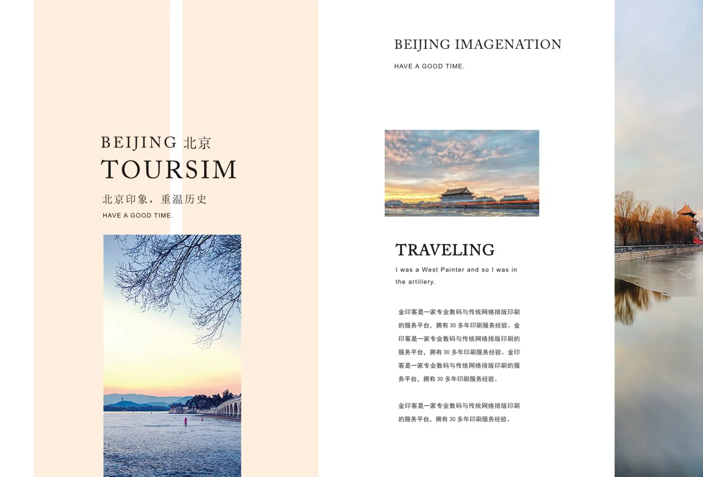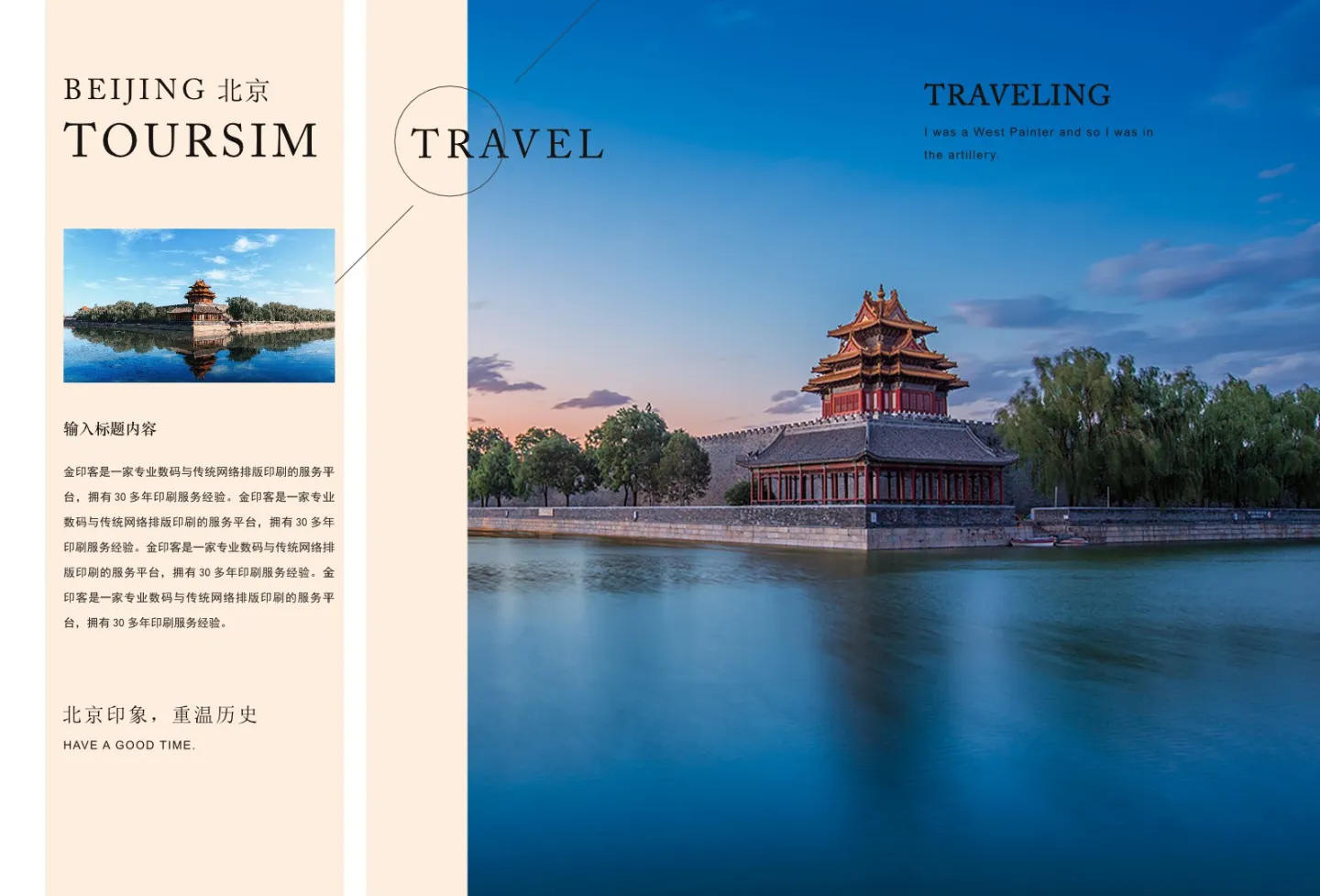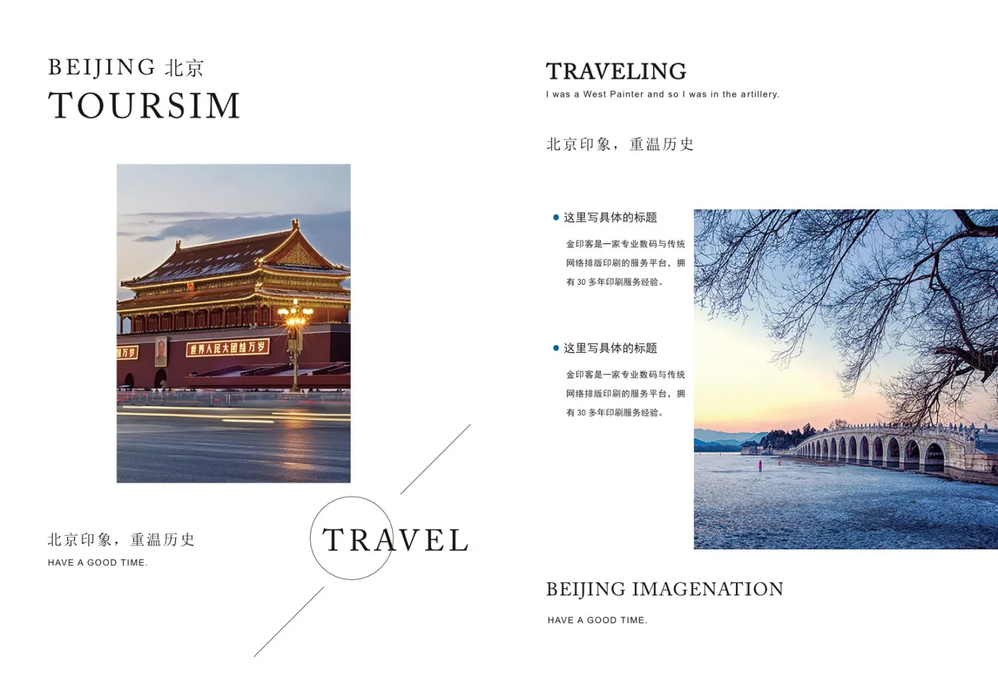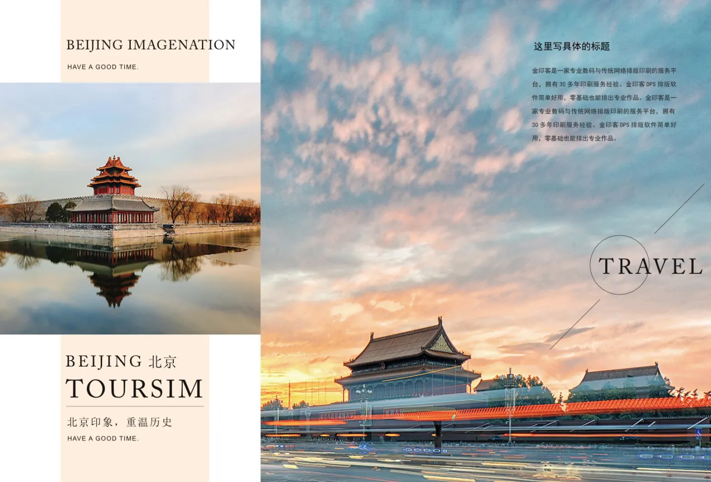 有没有觉得特别的大气、壮观,又格外精美呢?这本画册的主题是《北京印象》,但不论是北京、南京还是西安、洛阳,只要是具备一定历史感照片,套上这一款模板,效果就会非常棒。那种历史与艺术相结合的气息,就会立刻扑面而来。而这种效果,不是简单的照片堆积和排列能够办到的。