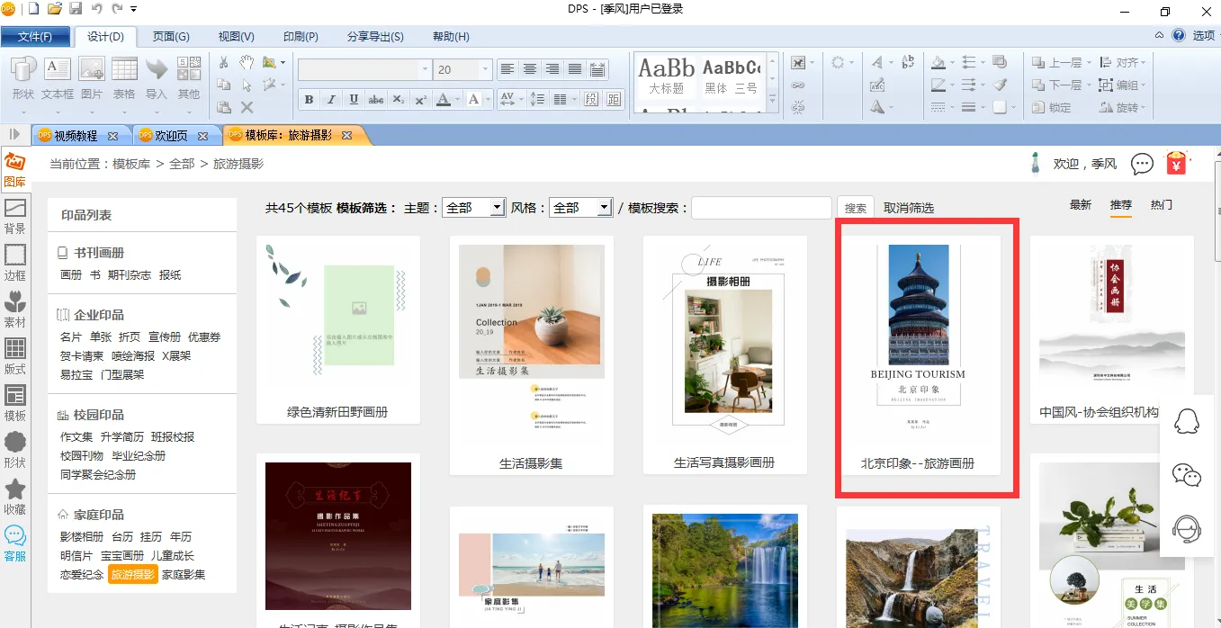 那么,这些旅行画册模板要如何使用呢?很简单,这些模板都是可以免费下载,免费使用的。你只需要下载金印客DPS设计排版印刷分享软件,然后点开【模板库】,在【家庭印品】中选择【旅游摄影】,就会发现里面有很多精美的旅行画册模板。