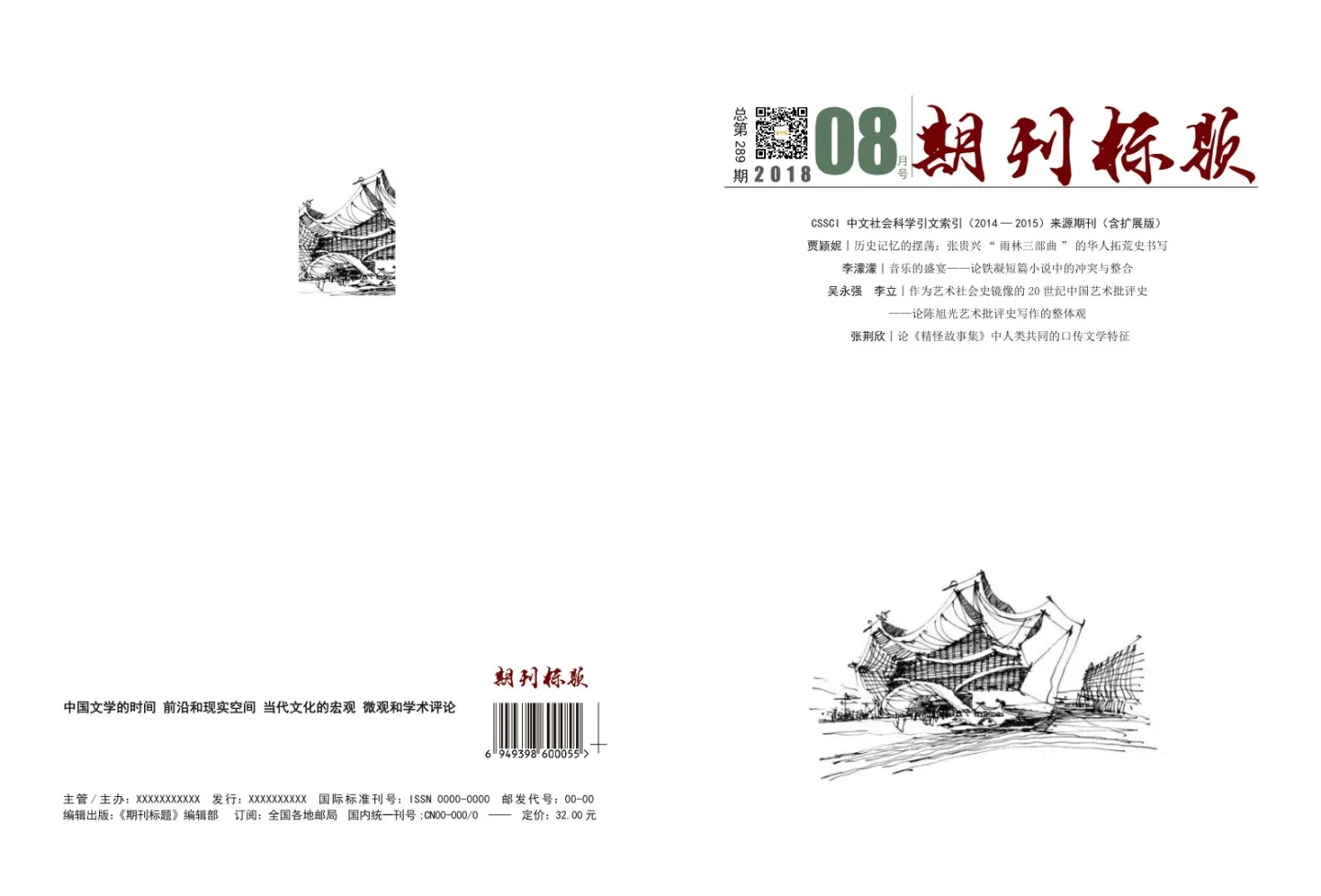这是封面,是按照典型的学术期刊样式制作的。封面上有期刊名、刊登月份、主要文章标题,还有刊号、订阅方式、价格等等,都是符合出版物规则的。您只需要将模板的文字内容,修改成自己的内容即可。