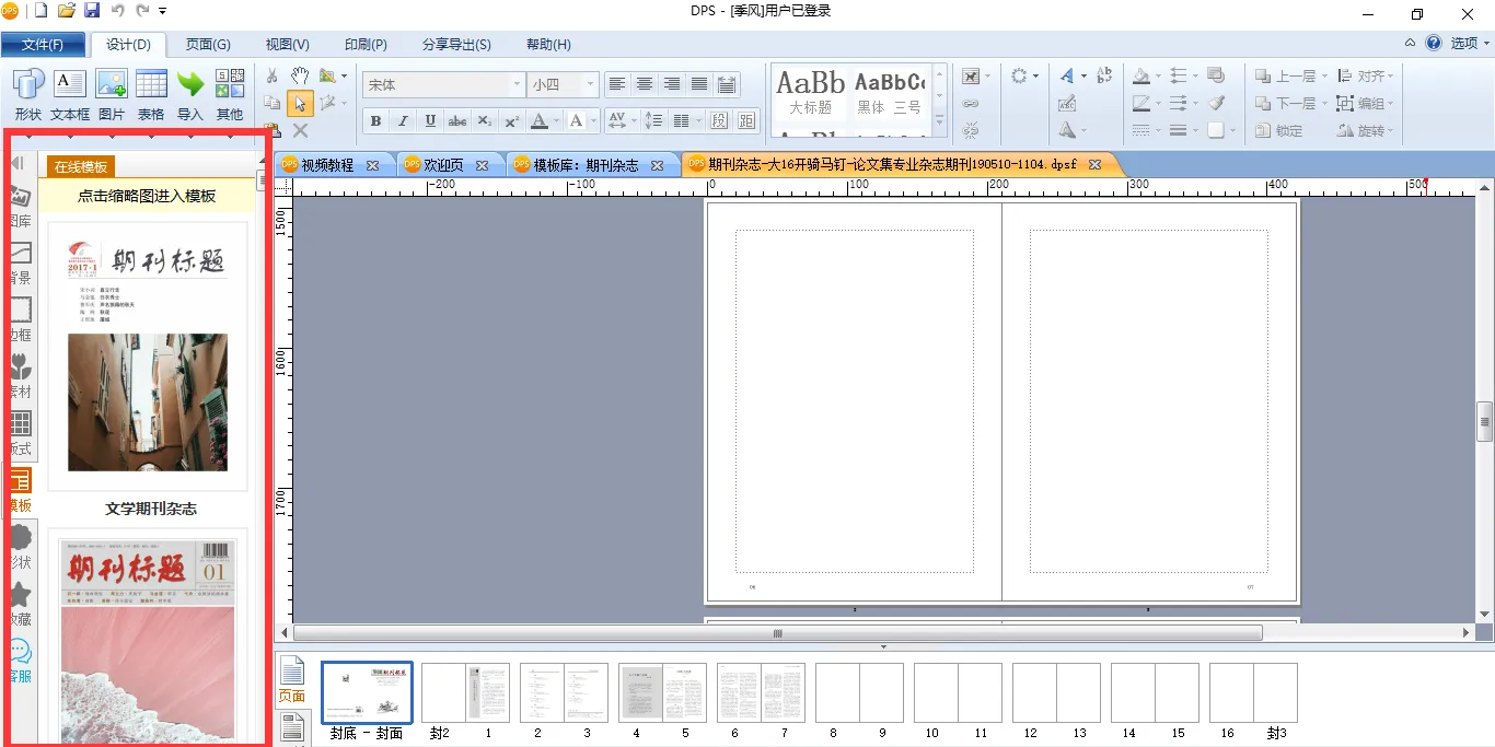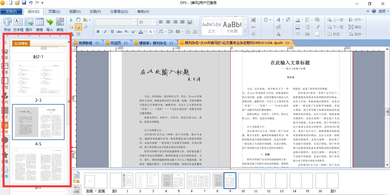 这里还要说明一下的是,由于模板并没有覆盖到所有的页面,所以当大家发现页数不够时,需要自行添加模板的页面。添加页面的方法很简单,点开左侧编辑栏的【模板】,会发现里面有很多的模板。