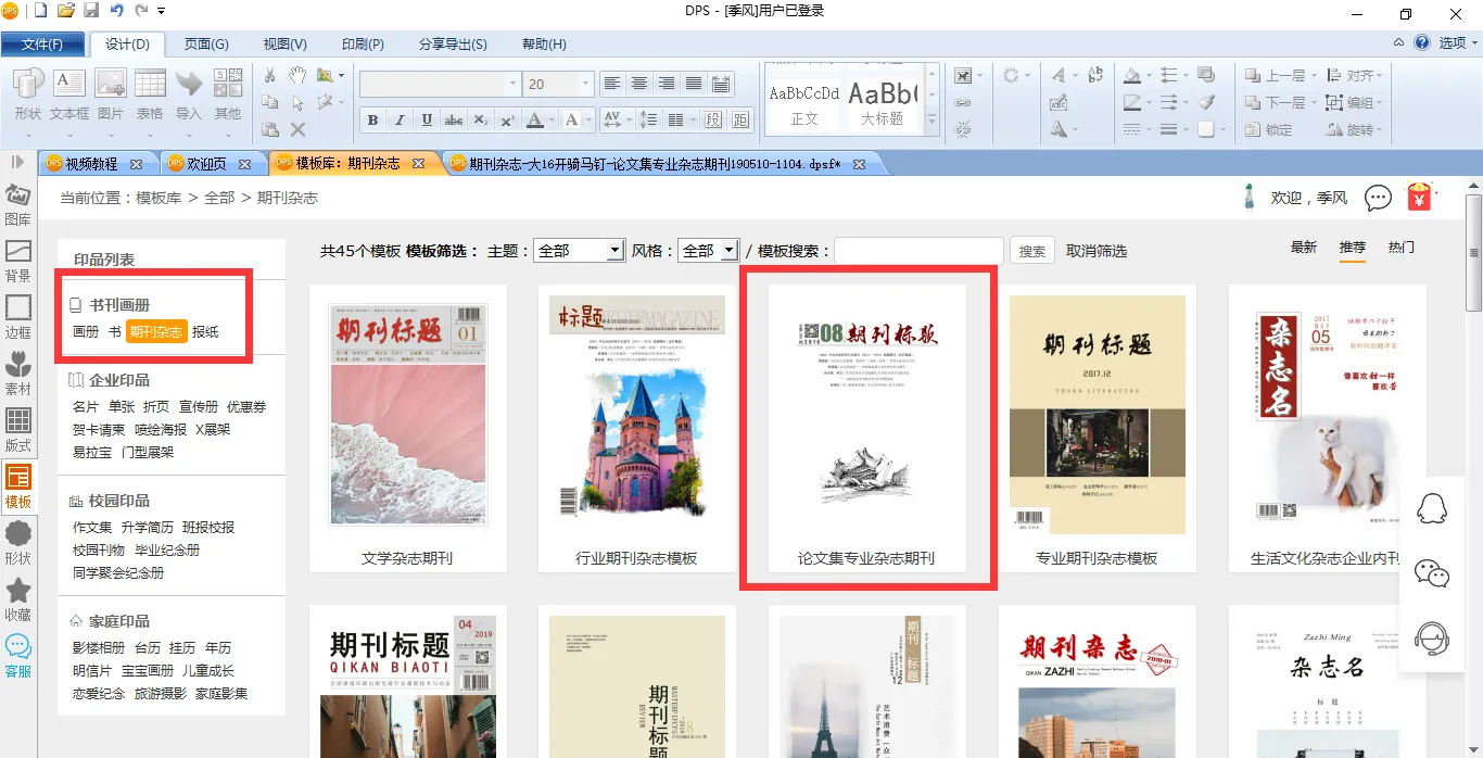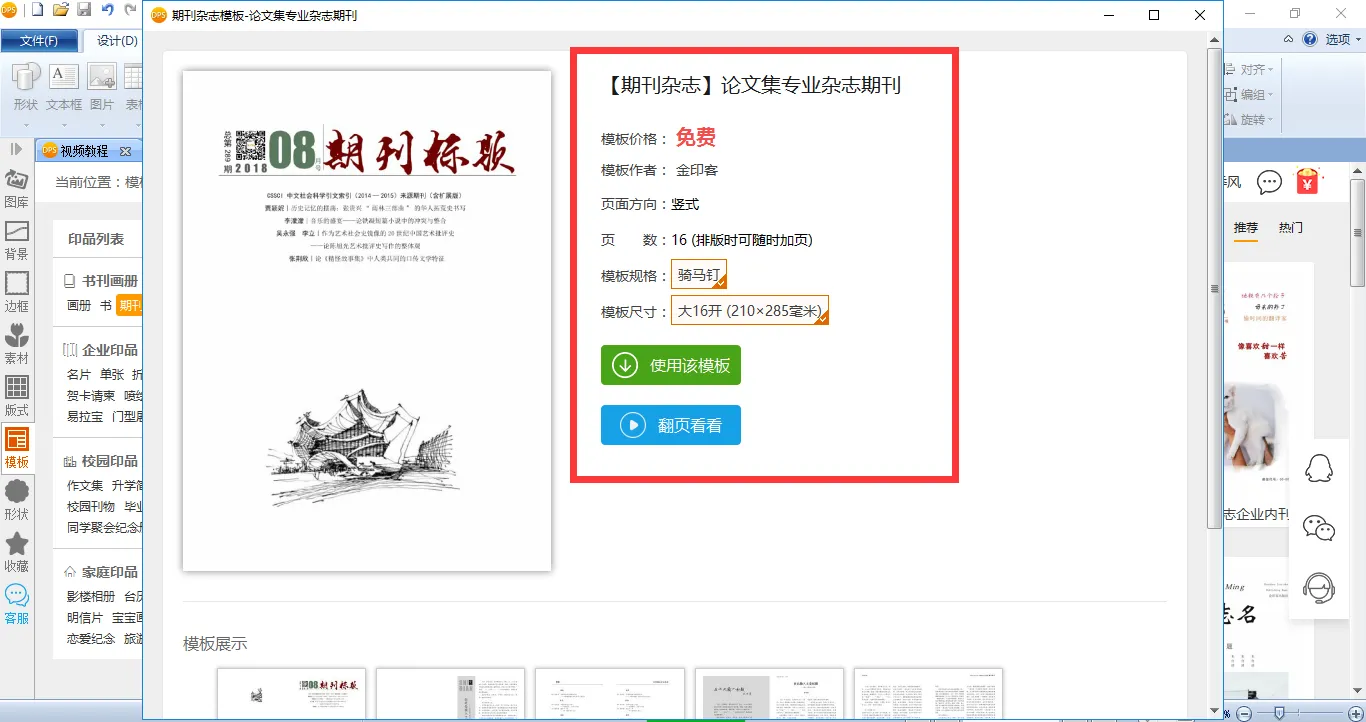 那么,这些模板具体要怎么使用呢?非常简单,所有这些杂志模板都是可以免费下载、免费使用的。您只需下载金印客DPS设计排版印刷分享软件,然后打开【模板库】,在【书刊画册】中选择【期刊杂志】,就会发现里面有很多期刊杂志模板。