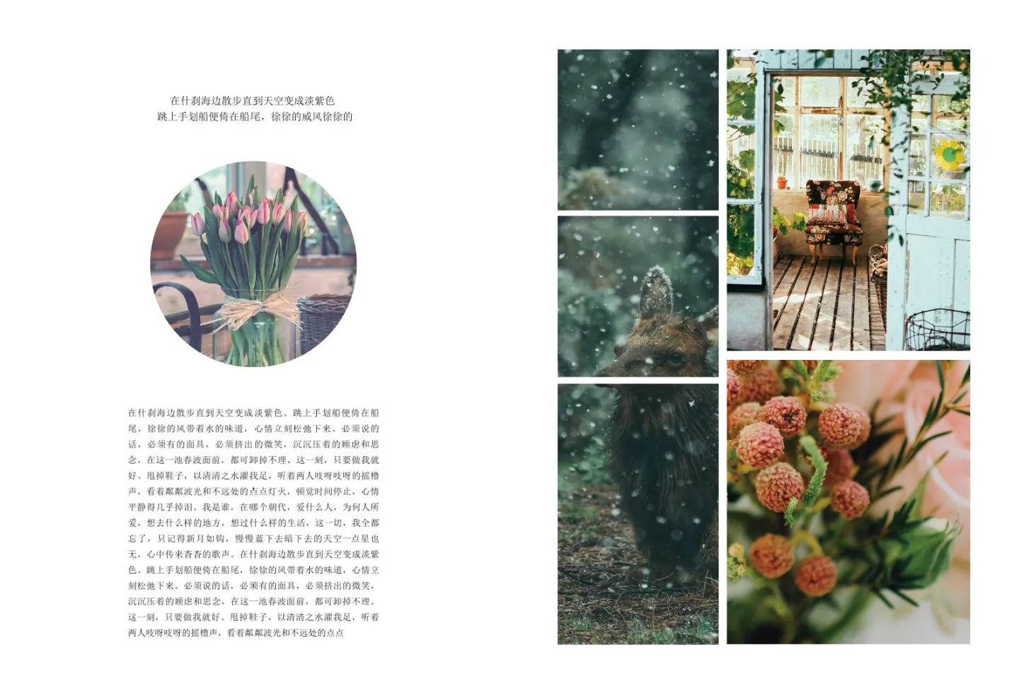 画面版式的设计轻松而随意,恰如十分随性有点慵懒的你。不会刻意去规划什么,常常一个人、一杯清茶、一本书,就可以打发一个下午。