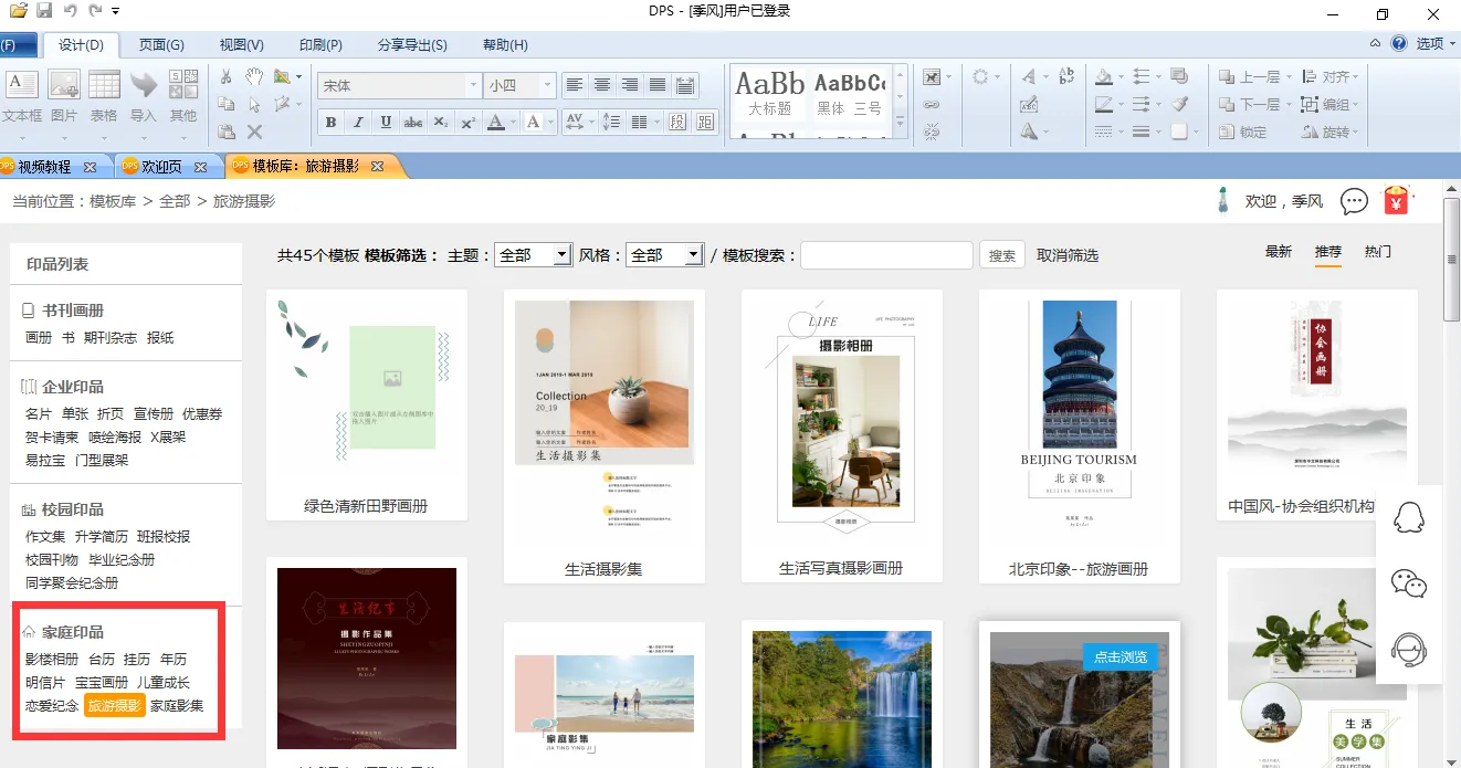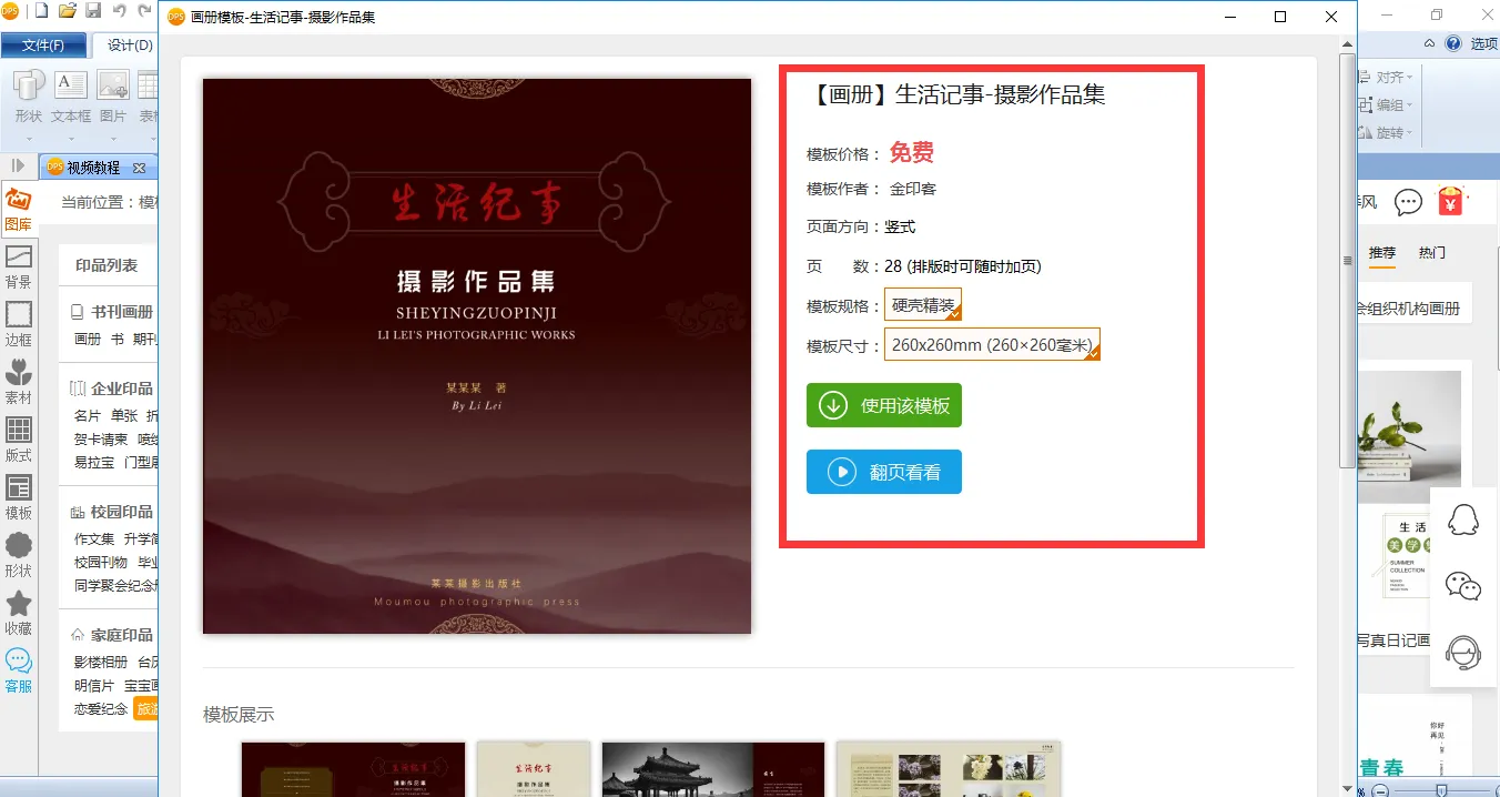 那么,这些模板具体要怎么使用呢?非常简单,所有这些摄影集模板都是可以免费下载、免费使用的。您只需下载金印客DPS设计排版印刷分享软件,然后打开【模板库】,在【家庭印品】中选择【旅行摄影】,就会发现里面有很多期刊杂志模板。