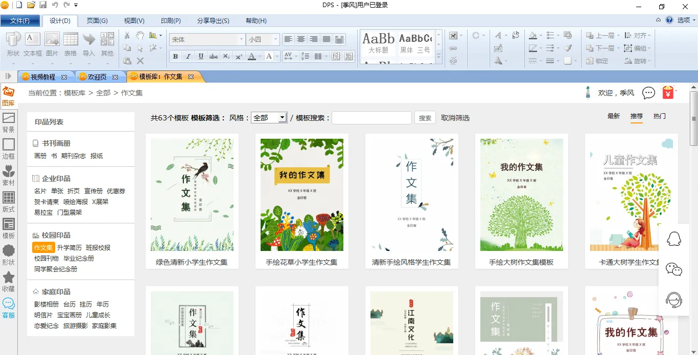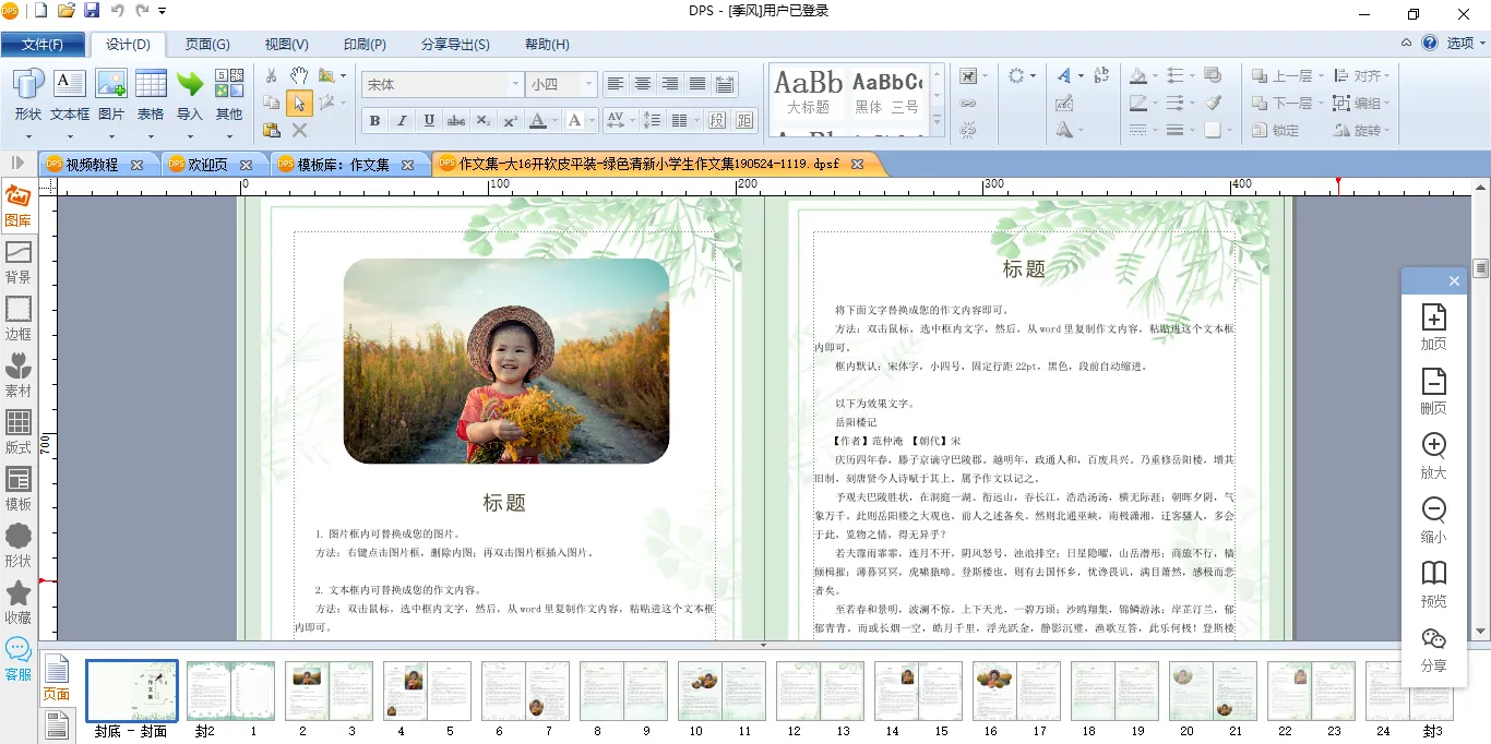 如果您也想为孩子制作一本作文集,下载金印客DPS设计排版印刷分享软件,打开【模板库】,选择【作文集】,然后从中挑选您中意的模板即可。将模板在软件内打开之后,就可以对模板内容进行编辑了,最快30分钟就能制作一本作文集,大大节省了父母的时间和精力!