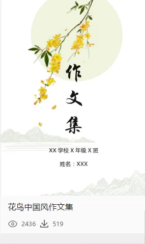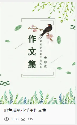要说到金印客的“杀手锏”,作文集绝对算得上一个。迄今为止,金印客已有超过50套的精美作文集模板,有中国风、小清新、卡通等多种风格,全部供用户免费下载。