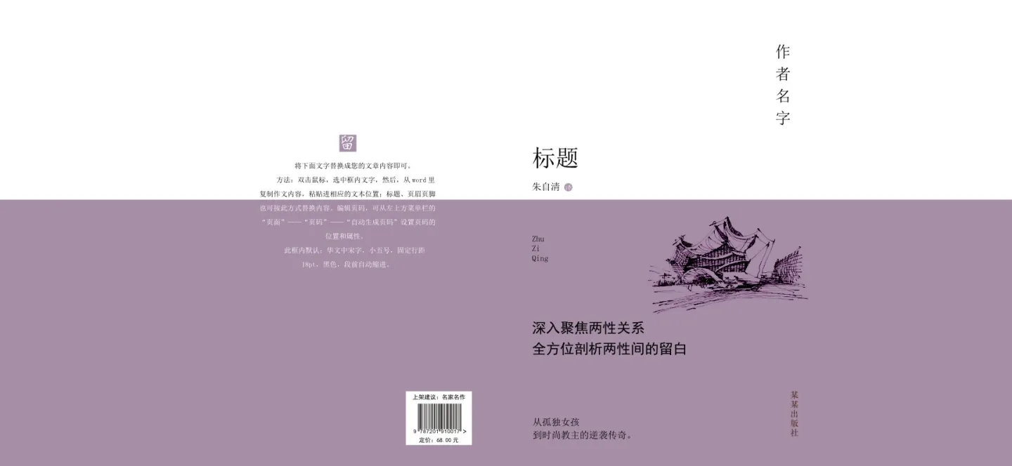 替换掉封面上的作品标题、作者名、出版社以及其他相关的文字,这个精美的封面就属于你啦,是不是非常简单呢?