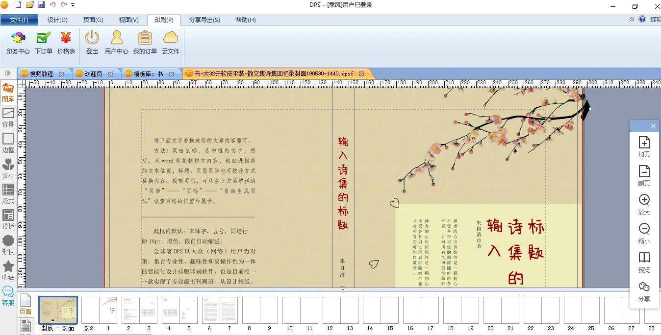 只需要免费下载金印客DPS设计排版印刷分享软件,所有这些封面你都可以免费使用了。下载软件后,打开【模板库】,选择【书刊画册】——【书】,就可以看到许多书籍模板,选中模板,然后将其在DPS软件中打开,就可以进行编辑了。