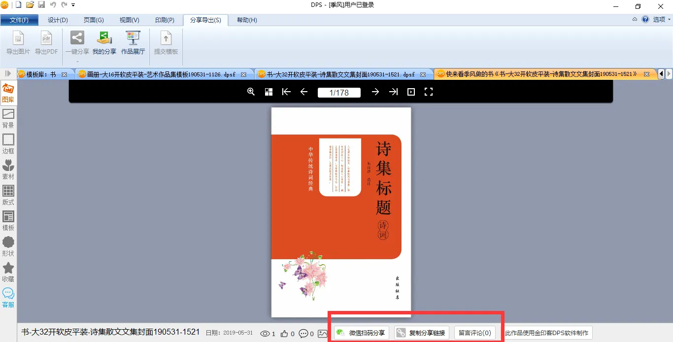 书籍制作完成之后,你就可以获得免费的电子书籍了。只需在软件编辑栏上方点击【分享导出】——【一键分享】——【分享所有页】即可。